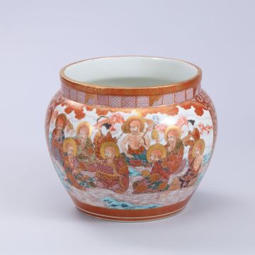 二代武腰善平は1873年(明治6)10月12日に、九谷庄三の弟子300人中の第一人者と謳うたわれた初代武腰善平(1843~1907)の長男として生まれました。初代善平の姉しづは九谷庄三の妻であることから、二代善平は庄三夫妻から格別の薫陶を受けたと伝えられています。そのような父初代善平のもとで二代善平は、幼少の時より陶画を学んできました。初代善平の三男は初代泰山で、二代善平の弟にあたります。初代善平の子どもたちへの指導は厳しく「根気強く」と「工人に恥じぬ仕事を」のふたつを身をもって修業させたといわれています。 二代善平は父から指導を受けた庄三風の彩色金襴手や赤絵細描などを巧みとし、九谷の伝統技法を維持伝承した名匠のひとりです。大正時代には楽焼をはじめたといいます。1935年(昭和10)63歳で歿しました。現在、日展で活躍中の現代九谷焼作家武腰一憲氏の曽祖父にあたります。KAM 能美市九谷焼美術館 陶工・陶商・作家一覧