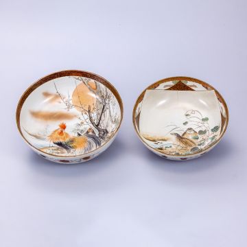 色絵旭日雄鶏図深鉢 / 色絵山帰来鶉図深鉢