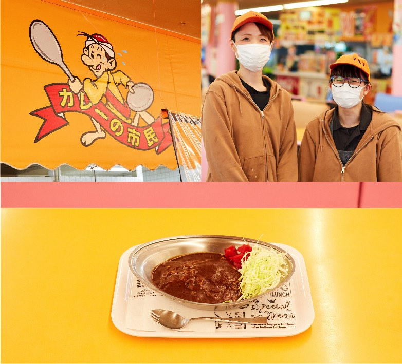 石川県にたくさんある有名なカレーの一つがこの「カレーの市民アルバ」。シチューをベースにした欧風カレーはトロッと濃厚、まろやかな味。遊園地のフードコート内のお店ですが、カレーを食べるためだけに訪れる人も多いのだとか。もちろんカレーライスが看板メニューですが、約30㎝のなが~いポテトやチーズドッグ、カラフルなレインボーソフトも大人気です。ぜひご賞味ください。