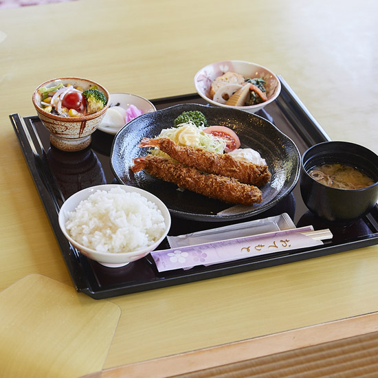 辰口福祉会館1階にあるレストラン。子どもからご年配の方までみんなが喜ぶバラエティー豊かなメニューは、どれもボリュームたっぷりで食べ応えあり。気楽においしく食事ができるアットホームなお店です。館内にあるふるさと温泉帰りの方、会議やイベントの間の食事に利用される方、煮物や揚げ物などのお惣菜をテイクアウトする方、とまさにみんなの食堂。地域の催事、法事などには、お弁当・オードブルの注文に応じるそう。家庭的なおいしいごはんが食べたくなったらここへ。同じフロアーにある「喫茶 アロエ」と親子で切り盛りされています。