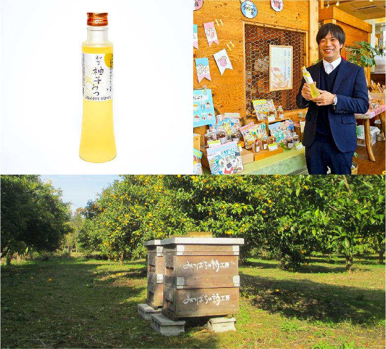 能美市では、当初は柚子の受粉のために箱を設置していたのですが、思いのほか高品質な蜂蜜がとれ、そんなミツバチたちの縁で無農薬の国造柚子とのコラボレーションが実現しました。柚子は皮ごと搾りますが、苦みを出さず、独特の香りを残し、少量の柚子オイルでまろやかな風味を引出すという微妙な工程を経て作られます。良質のドリンクは贈り物にも最適です。